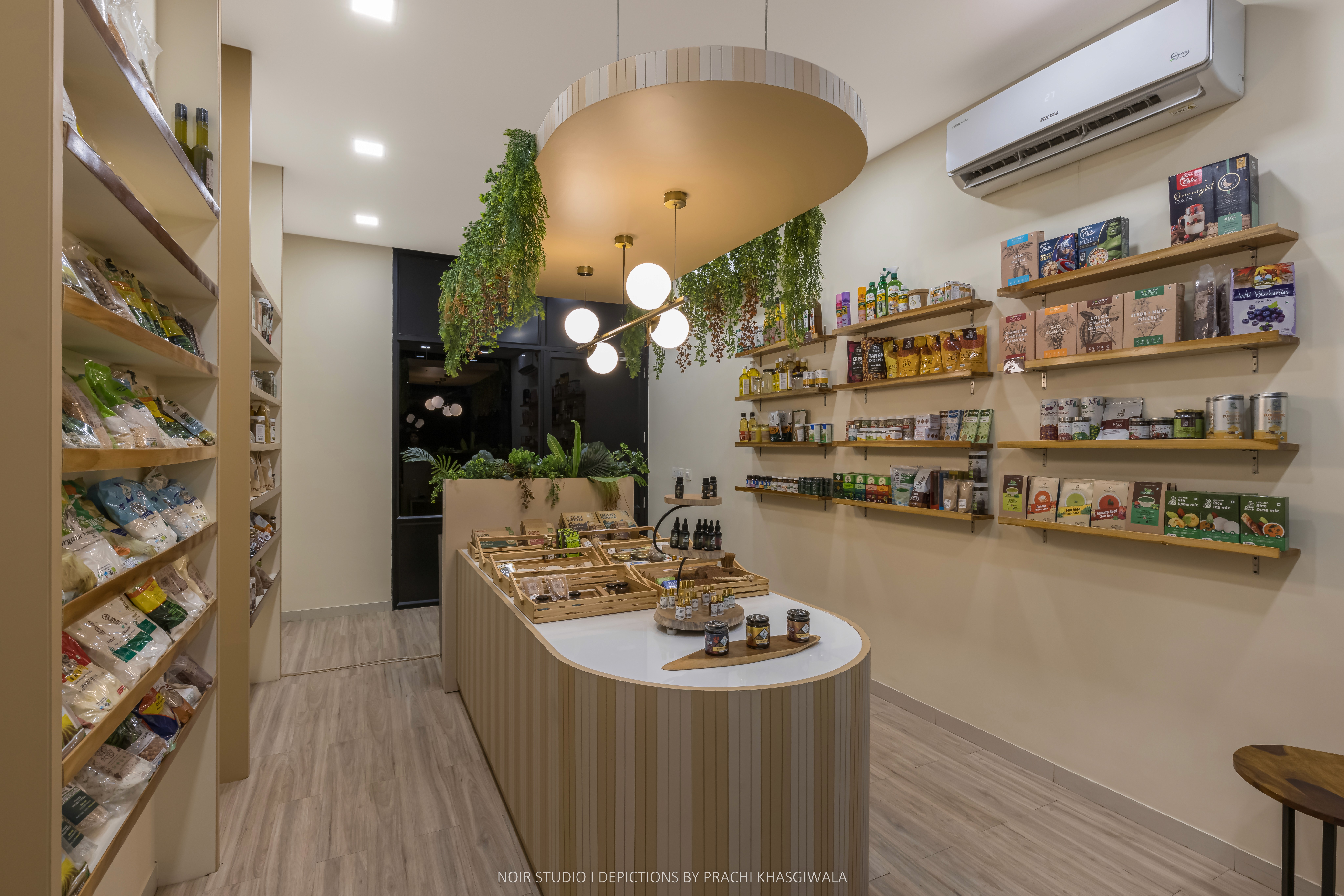 Nature’s Crate is an organic grocery store designed to break away from the visual stereotypes of typical retail environments. The core concept centers around creating a space that feels fresh, grounded, and rooted in simplicity—mirroring the ethos of the products it offers. The goal was to avoid the clutter of standard supermarkets and instead offer a serene shopping experience.