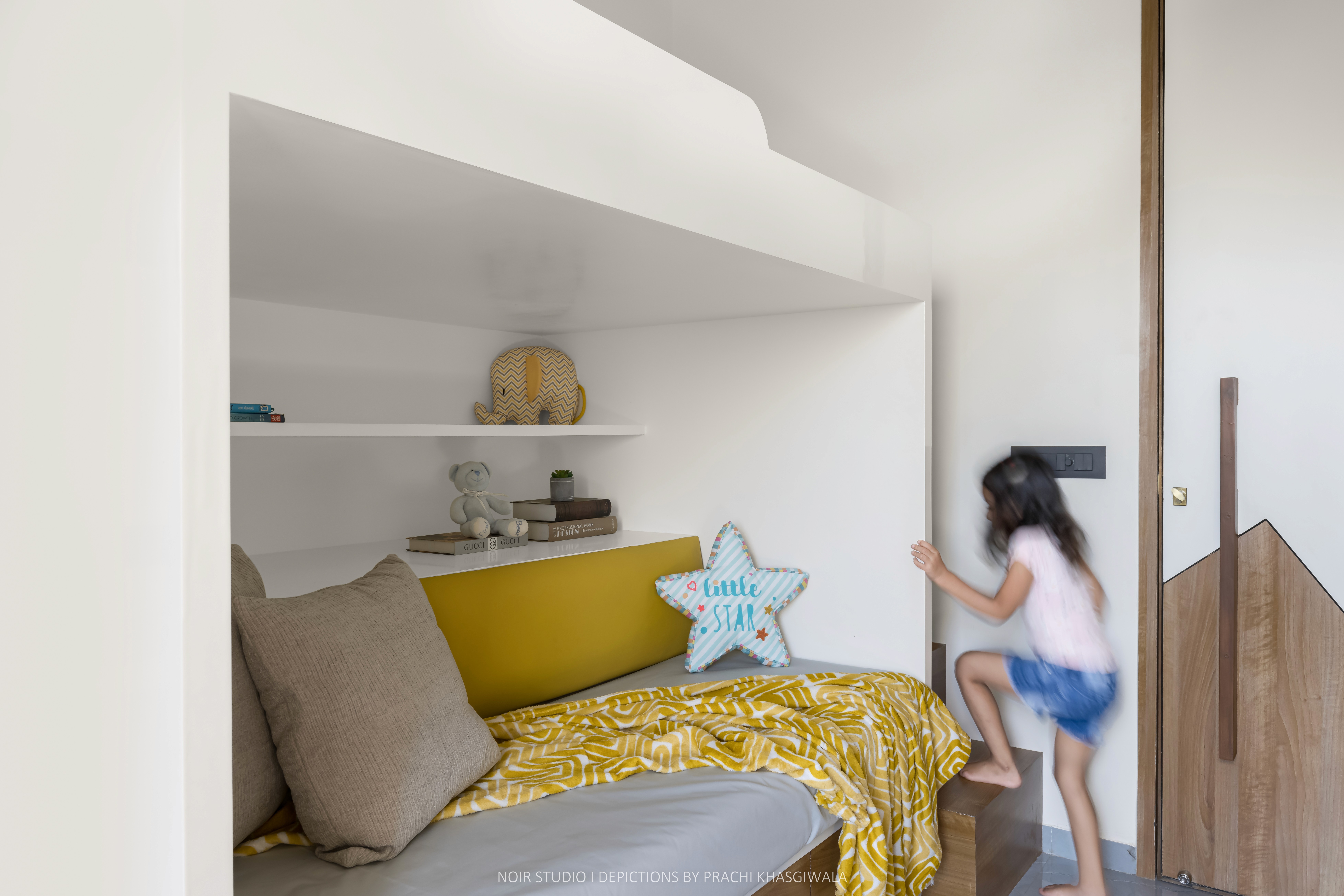 A gentle pop of color enlivens the parents’ bedroom, adding contrast without disrupting the overall harmony. Every element in Unit 503 reflects balance, purpose, and understated charm proof that thoughtful design thrives within constraints.